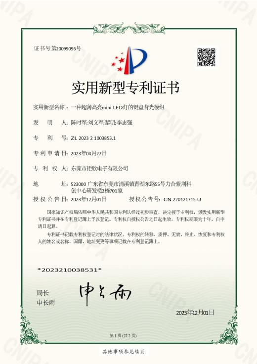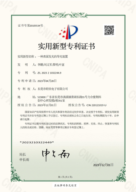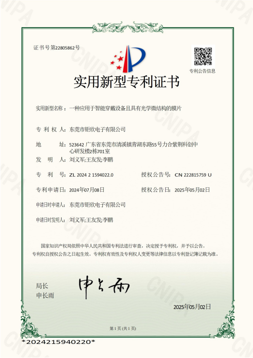 东莞市钜欣电子有限公司成立于2007 年,总部位于东莞清溪镇,下设东莞清溪、惠州泰美两大生产基地,现有约 600 名职工,是 3C 消费电子领域全球领先的二次光学精密制造企业,核心产品包括导光膜、键盘背光膜、光学透镜等,广泛应用于智能手机、智能穿戴、汽车电子等多个领域,服务华为、小米、联想等国际国内知名客户,通过 ISO9001、ISO14001、IATF16949 等多项体系认证,连续 8 年荣获 “高新技术” 和 “专新特精” 企业称号,同时是东莞市倍增企业、后备上市企业及国家小巨人(审批中)企业,秉持 “环保先行、品质第一、技术领先” 的经营方针和相关共赢类经营理念,专注为多方创造可持续价值。